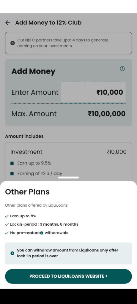 12% क्लब मे कम से कम 10000 और ज्यादा से ज्यादा 10 लाख रुपये इन्वेस्ट कर सकते है।