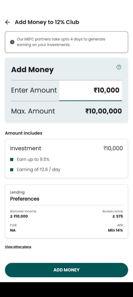 12% club एक P2P landing platform/application है जिसकी मदद से आप पैसे इन्वेस्ट कर सकते है यानि की उधार दे सकते है और उधार पे ले भी सकते है।