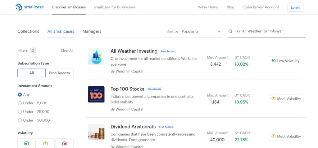 - Small Case एक best platform है invest करने के लिए जिसको ज्यादा knowledge या time नही है।